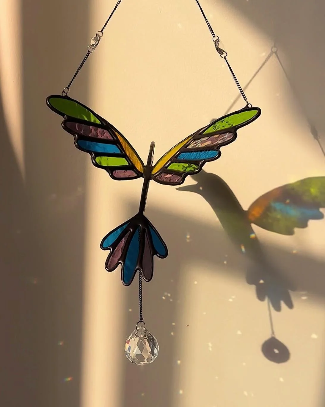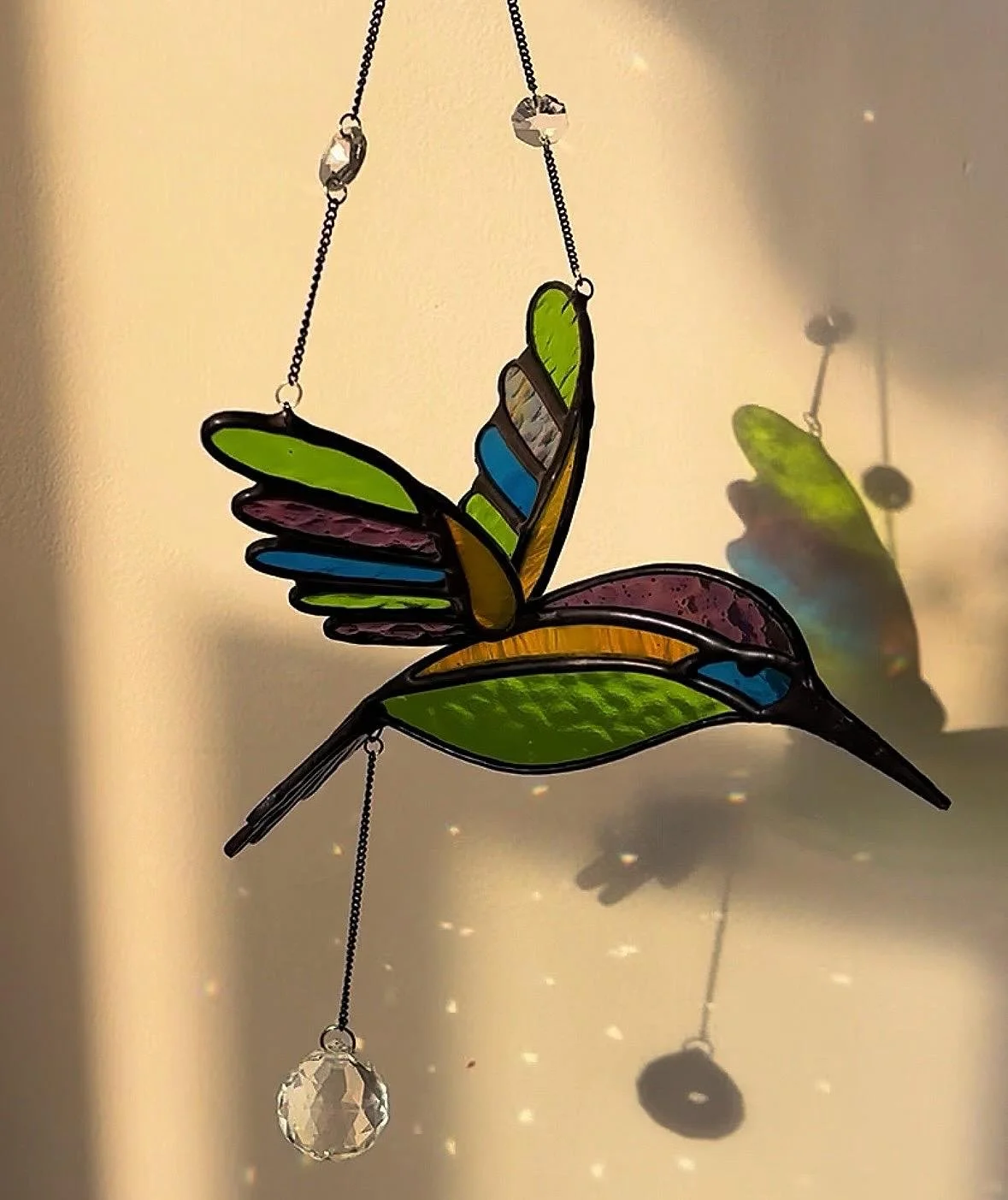 Hung up in a sun-facing window, it twirls and glistens in the sun, shooting rainbows all around the room.